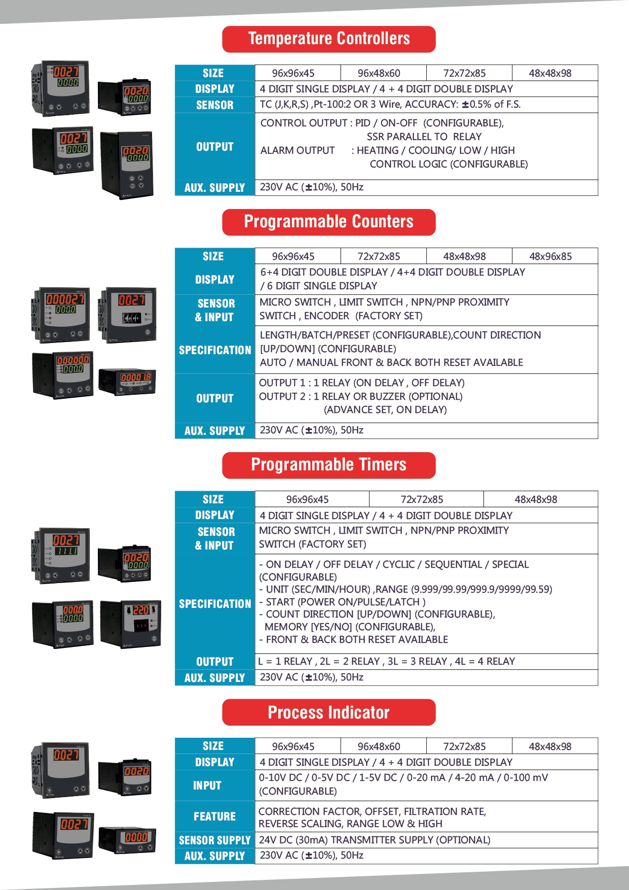 • Temperature Controllers - Precise regulation of industrial heating and cooling processes.